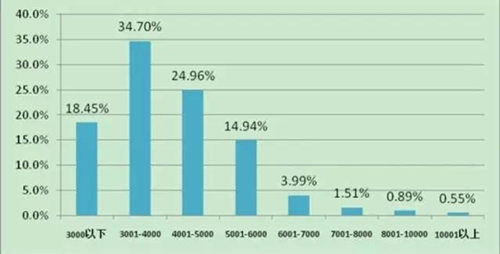 而此前热传的“快递员月入上万”也被数据证伪。4月28日,中国物流与采购联合会对外发布的《2017年中国电商物流与快递从业人员调查结果》显示,74.6%的电商物流和快递从业人员月平均收入在3001元~5000元,14.94%的人在5001元~6000元,5.5%的人在6001元~8000元,月平均收入在8001元以上的占1.44%。