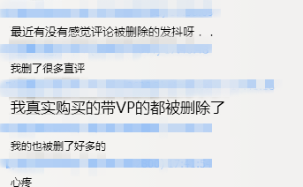 其中直评是平台正在全面打击的,被删除完全不意外;真实购买产生的VP评论被删除显然是误伤,最值得细看的是第二条。