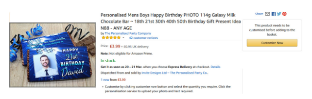 除了“奇怪”的新政策,亚马逊英国站还上线了个性化定制选项。这点值得卖家关注,随着人们的个性化需求越来越强,个性化定制产品也是助力卖家提升销量的重点之一。