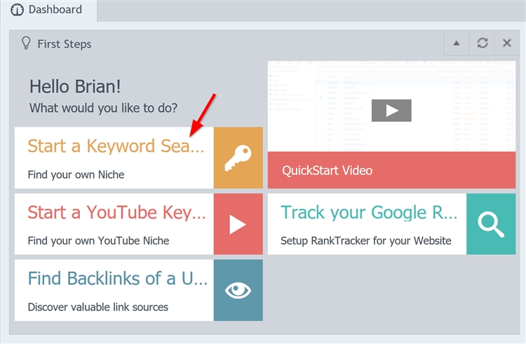 (2)点击“Start a Keyword Search”开启关键词研究: