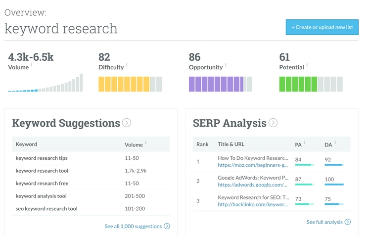 Moz的关键字研究工具有许多市场上其他工具不具备的功能,而且它非常简单易用。