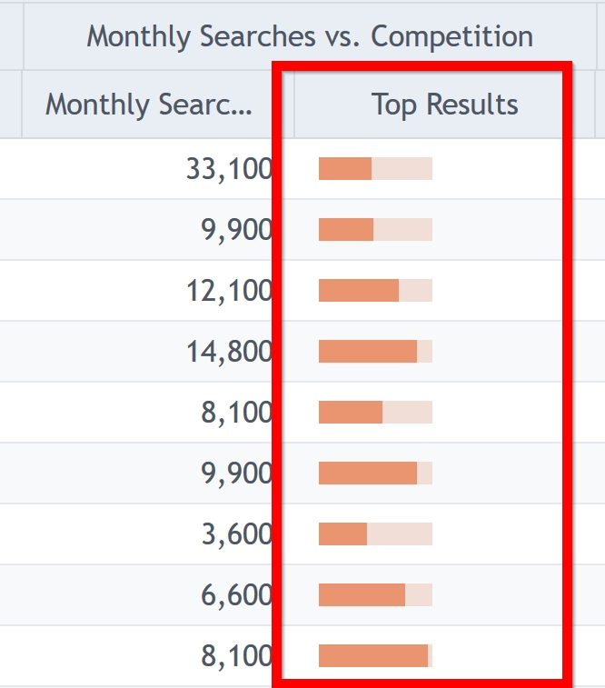 在每月搜索一栏旁,还有“Top Results”,用橙色条显示特定关键词要进入搜索结果Top 10的难度。通过点击关键词,卖家就可深入了解该关键词在谷歌搜索结果页首页的竞争情况: