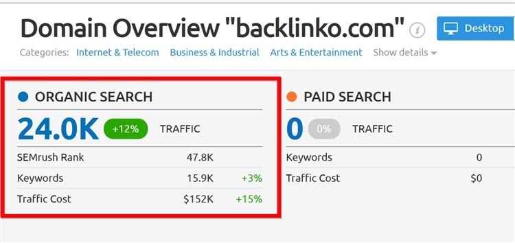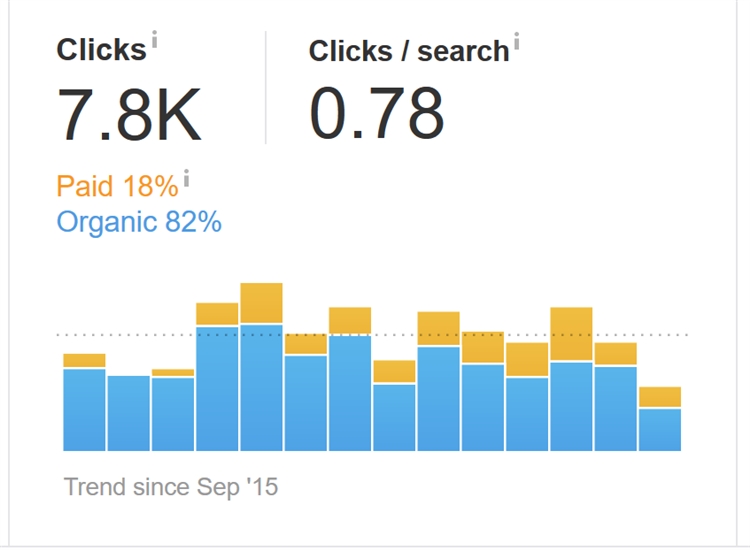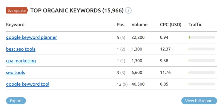 因此,如果你域名有大量的自然搜索流量,但Traffic Cost相对较低,则表明目标关键词转化率不高。