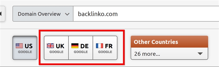 (2)如果你在美国以外的国家(如Google.co.uk)进行SEO优化,那么只需下拉国家菜单就可以选择查看特定市场的信息: