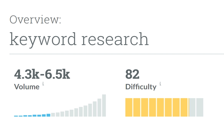 (3)然后像大多数关键词研究工具一样,Moz数据也包含月度搜索量和竞争情况(这里是“Difficulty”)等基础信息: