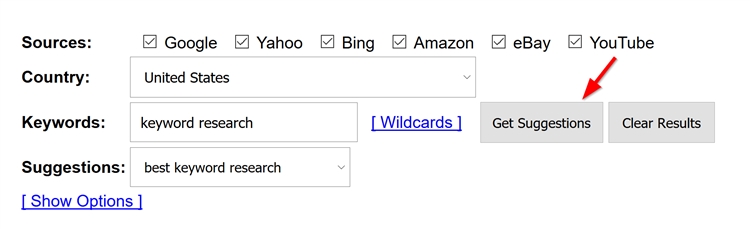 (2)接下来,输入种子关键词并点击“Get Suggestions”: