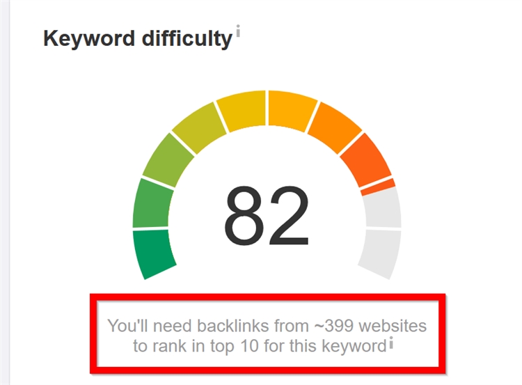(3)该工具关键词的难度分数有趣之处在于,它会估算你要达到谷歌搜索排名前10名的反向链接数量: