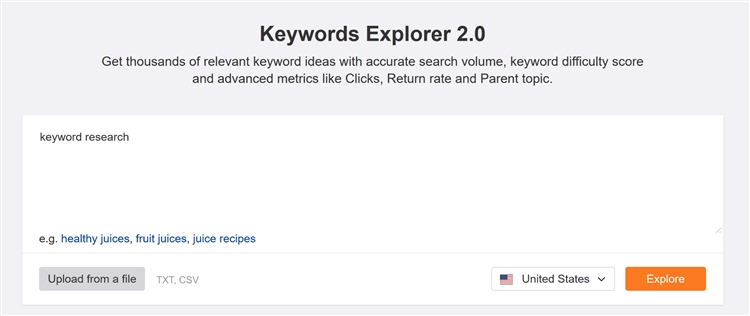 (1)要使用该工具,首先卖家要转到Keyword Explorer页面并输入种子关键词: