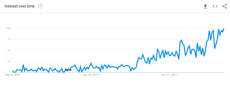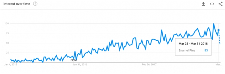 五颜六色的搪瓷胸针,过去几年来已经流行起来了。这些便宜的配饰通常会融入流行文化,增加个性。如果卖家服饰,那么可以考虑添加此类产品销售。如果卖家有合作的制造商,甚至可以自己设计产品。以下是搪瓷胸针在Google Trends上的搜索趋势: