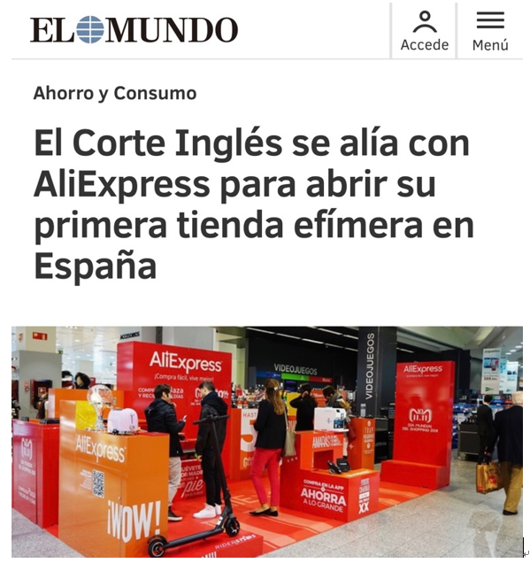 【外媒报道称,来自中国的电商平台与西班牙百货巨头牵手】