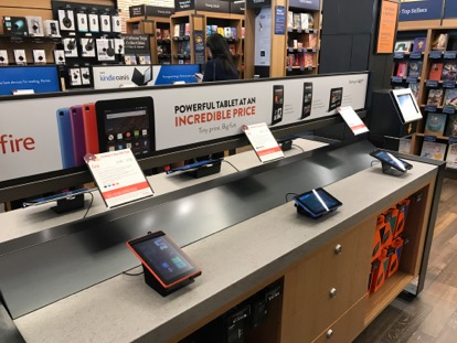 亚马逊书店的体验还不局限于图书方面。亚马逊的平板电脑Kindle Fire、新的智能硬件Echo以及电视机顶盒Fire TV都可以在亚马逊书店进行体验。
