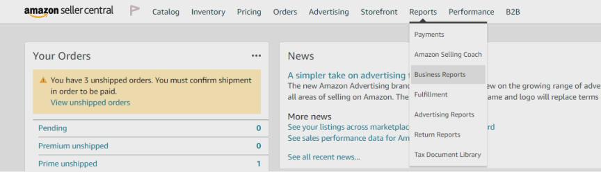 要大致了解帐户的运营状况,请转到Reports>Business reports。你可以从“Sales snapshot”中看到所有内容 ,这使你能够大致了解收入以及当天售出的商品数量。