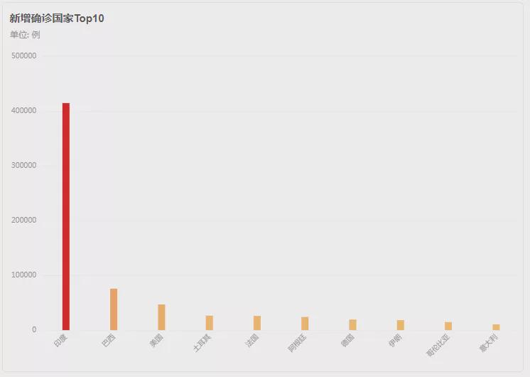 在过去一个月,印度报告的新冠病例急剧增加,日新增确诊人数突破40万大关。在过去一周,该国新增病例占全球新增病例的46%。网上曝出的很多视频和报道来看,火葬场和墓地都堆满了因新冠病毒而死的人的尸体。连续多日的持续恶化令各国都为之捏了一把汗。