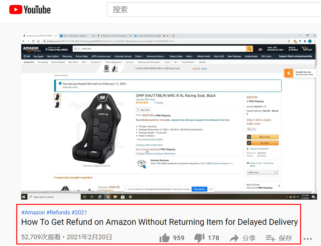 据博主介绍,他的视频所做的只是遵循亚马逊的指导方针和买家政策,通过这个退款“技巧”,在2021年获得亚马逊退款500美元!