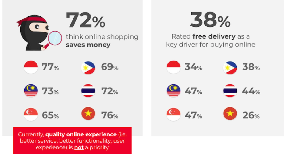 该市场研究涵盖了来自越南、新加坡、马来西亚、印度尼西亚、泰国和菲律宾六个东南亚国家的9,000名受访者。数据显示,越南订单的很大一部分是快速消费品(FMCG)产品,主要为服装和鞋类。
