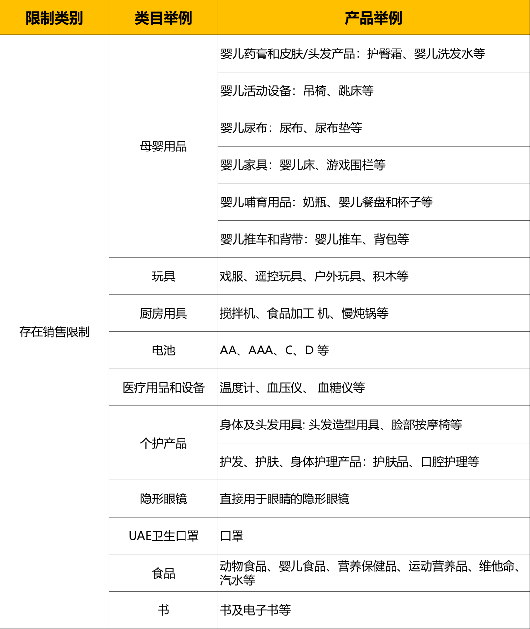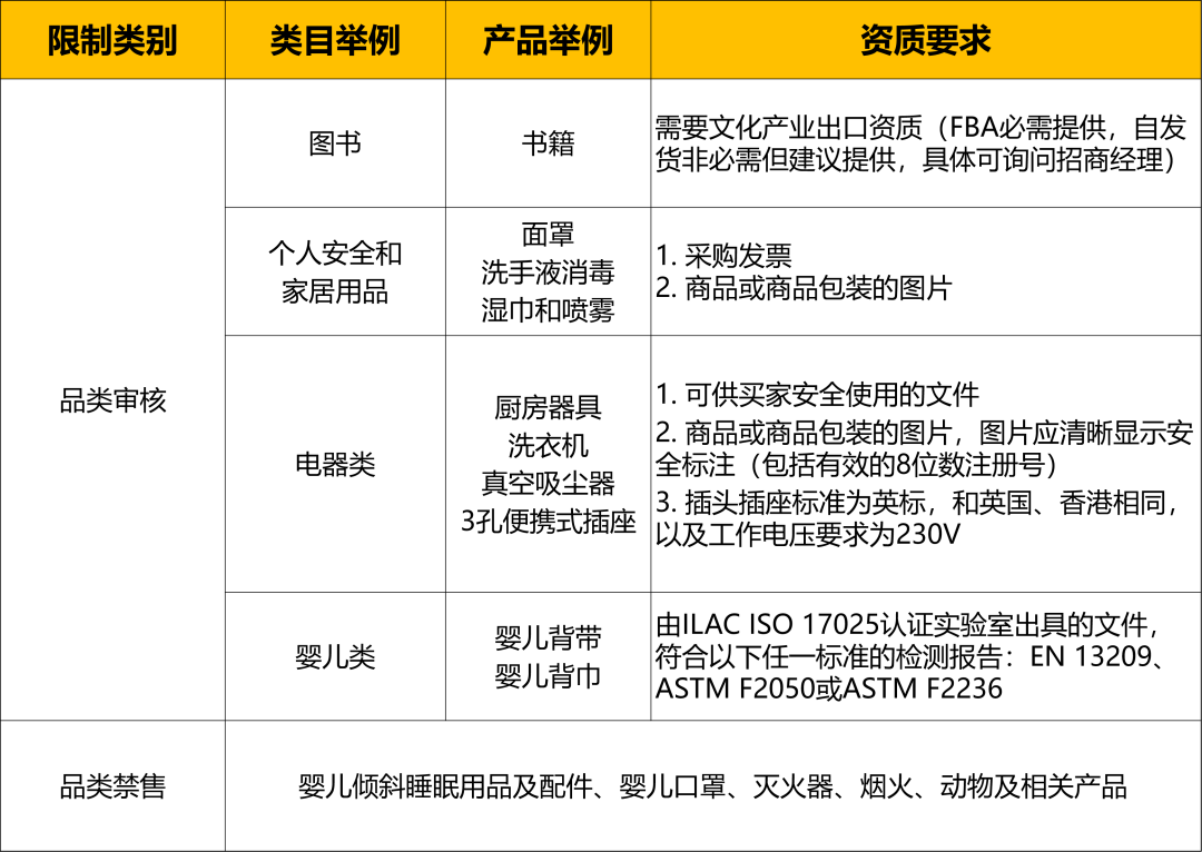 除了以上亚马逊的禁限售政策及商品合规查询方法,下面也为各位卖家带来了各个站点中存在销售限制情况的举例说明~如涉及涵盖您所意向销售的商品,请多加留意您心仪站点的禁限售政策,以防销售风险。