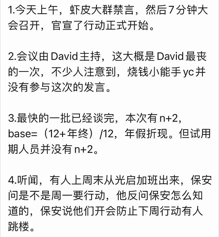 然而,更令人无语的是,有传闻表示,上周五的时候,Shopee已提前给保安开会,目的是为了防止裁员行动开始后,有人会因情绪不稳定而跳楼。