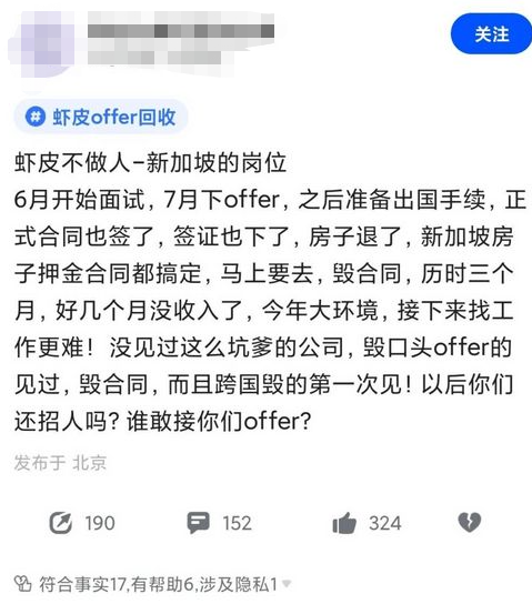 早在8月底,Shopee因为大规模取消offer一事,在国内引发热议。不少准员工在临近入职期却被毁约,其中主要包括Shopee在新加坡设立的岗位。