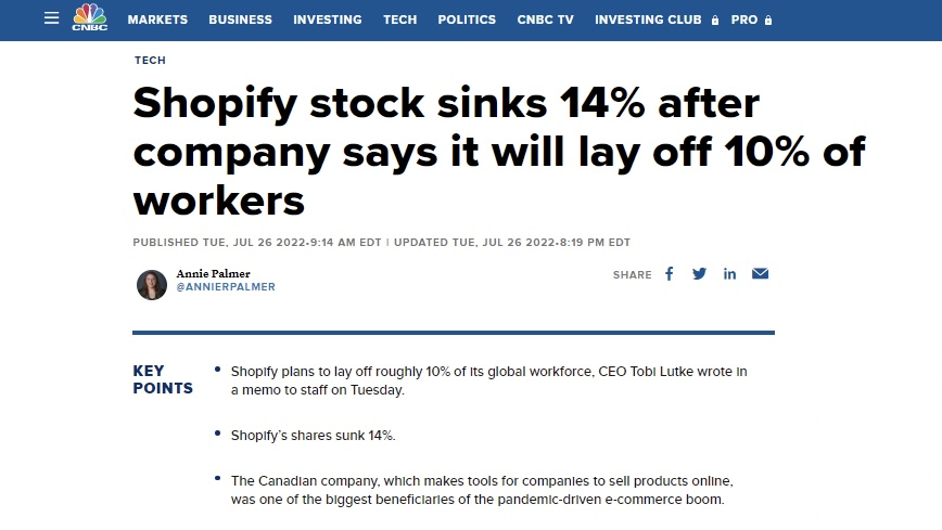 不过,在目前遇冷的市场形势下,遭遇危机的远不止Shopee一家。此前迅猛增长的Shopify也难逃股价连跌,财报披露转盈为亏,裁员约千名员工,而亚马逊的裁员数量更是达到10万人之多。