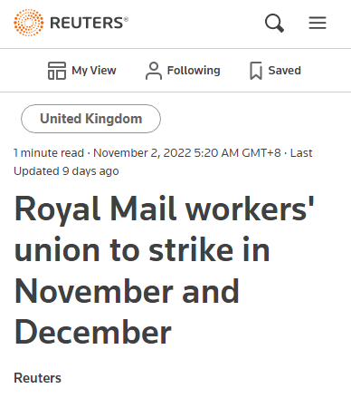 此前,面对生活成本危机,工会要求起码给予工人高于通货膨胀率的加薪,并提出了一项协议,其中包括在两年内将员工工资加薪7%,今年一次性加薪2%,同时宣布了将在11月底和12月初举行两次48小时的罢工。